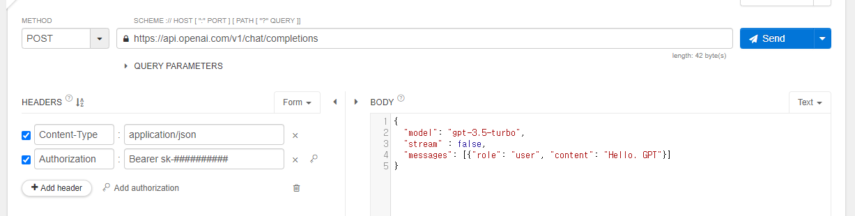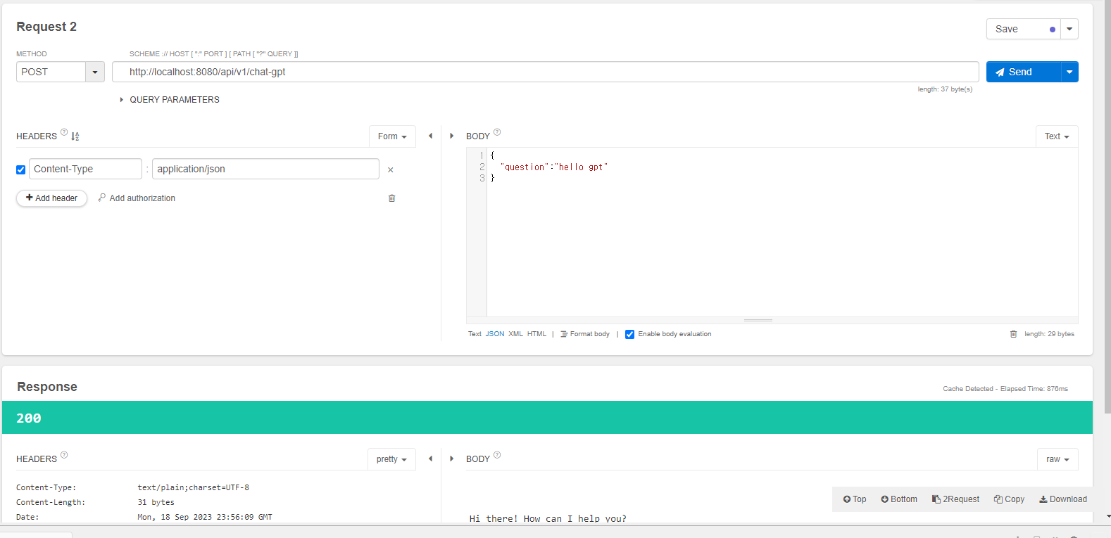 아래 처럼 body에 내용을 입력하면, 응답 body에 대답을 해줍니다.